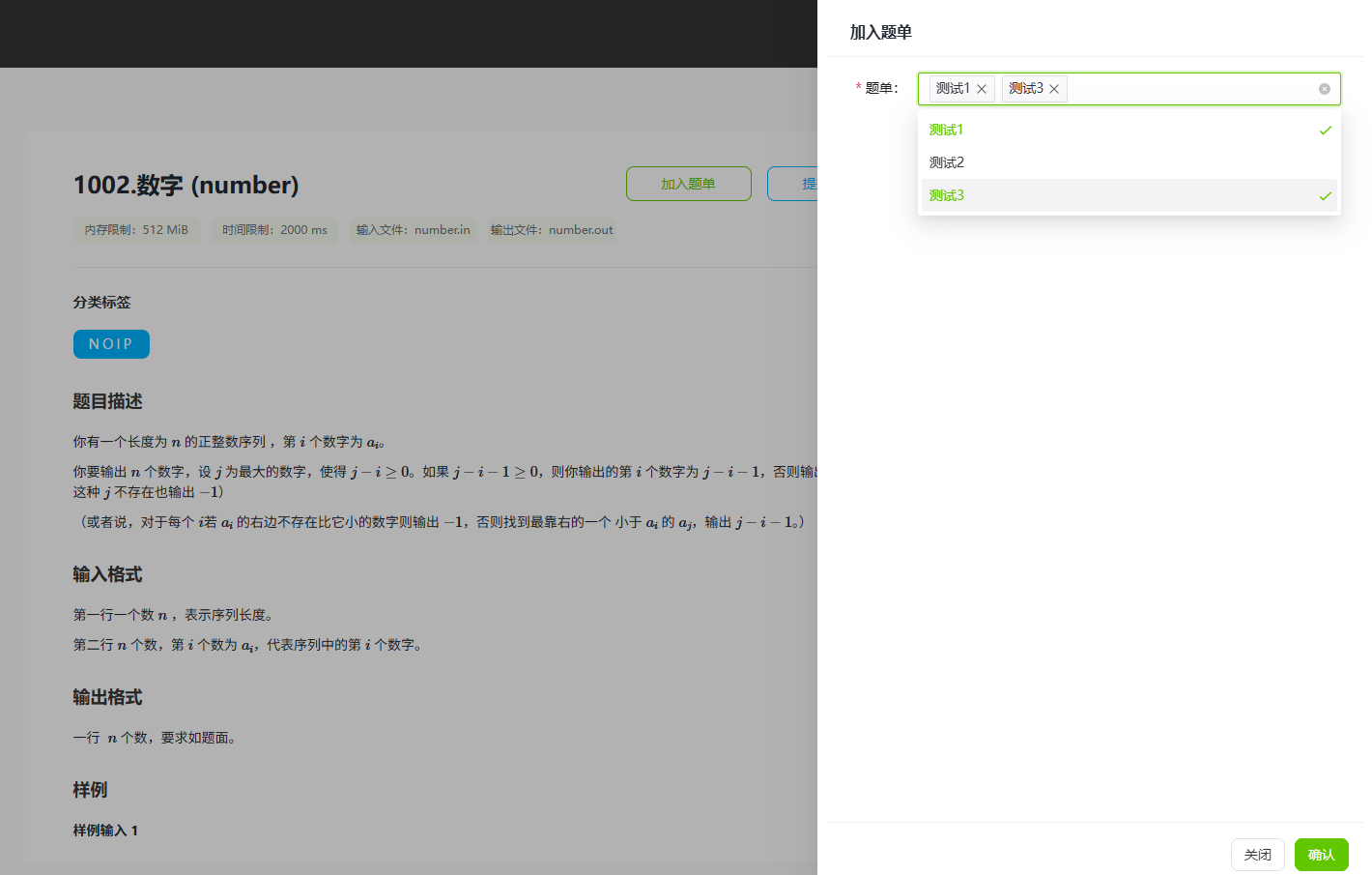如果你想将这道题目加入到某个题单中,方便以后练习,可以点击 “加入题单” 按钮,选择相应的题单进行加入。