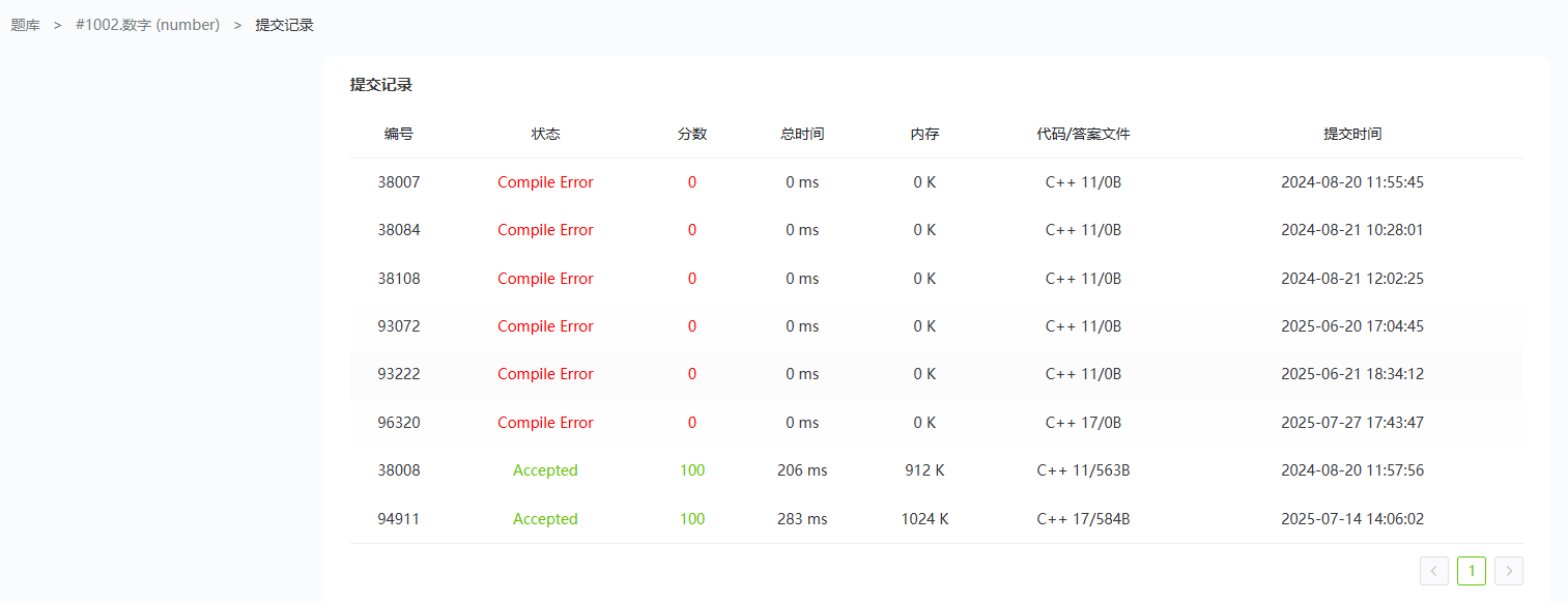 点击 “提交记录” 按钮,你可以查看自己提交这道题目的历史记录,包括提交时间、得分、代码等信息。通过查看提交记录,你可以了解自己的学习情况,及时发现问题并进行改进。