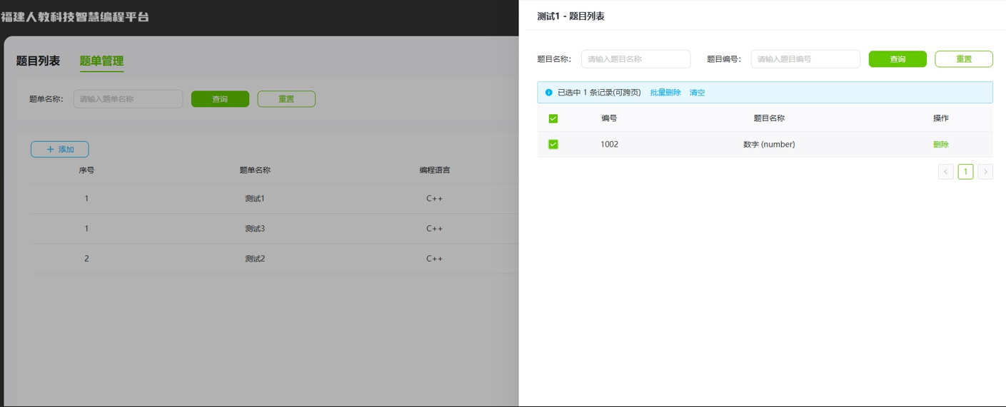 在题单管理页面,你可以通过题单名称进行查询,找到你需要的题单。 (三)题单编辑